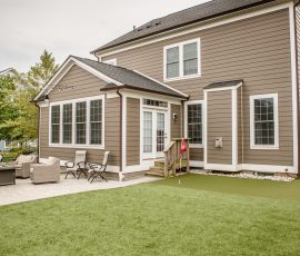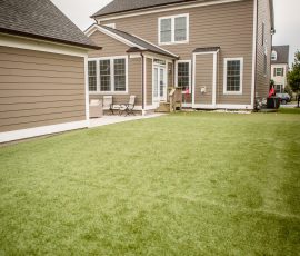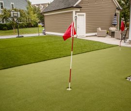Hometown Landscape designed and installed a custom backyard putting green with sports turf, providing a realistic practice environment for golfers. The turf delivers a smooth, consistent putting surface that allows for daily practice and skill development at home. Professional installation and careful layout ensure proper drainage, durability, and long-term performance. Browse the gallery to see how this putting green brings the feel of the course to the backyard while maintaining a clean, polished look year-round.