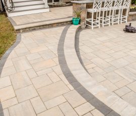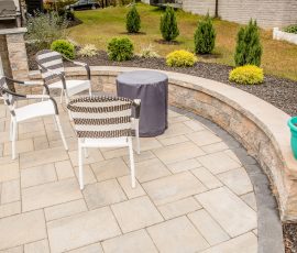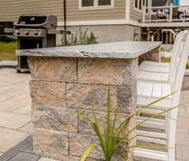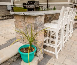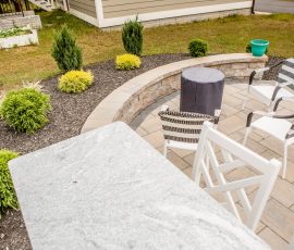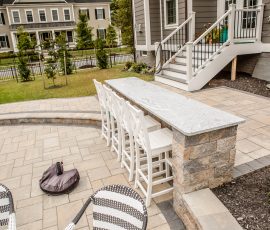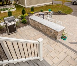 Hometown Landscape installed this compact patio featuring a built-in bar, making efficient use of a small outdoor space. The layout provides a convenient area for casual dining, entertaining, and everyday enjoyment without overwhelming the yard. Browse the gallery to see how smart design choices can add comfort and usability to even the smallest backyard.