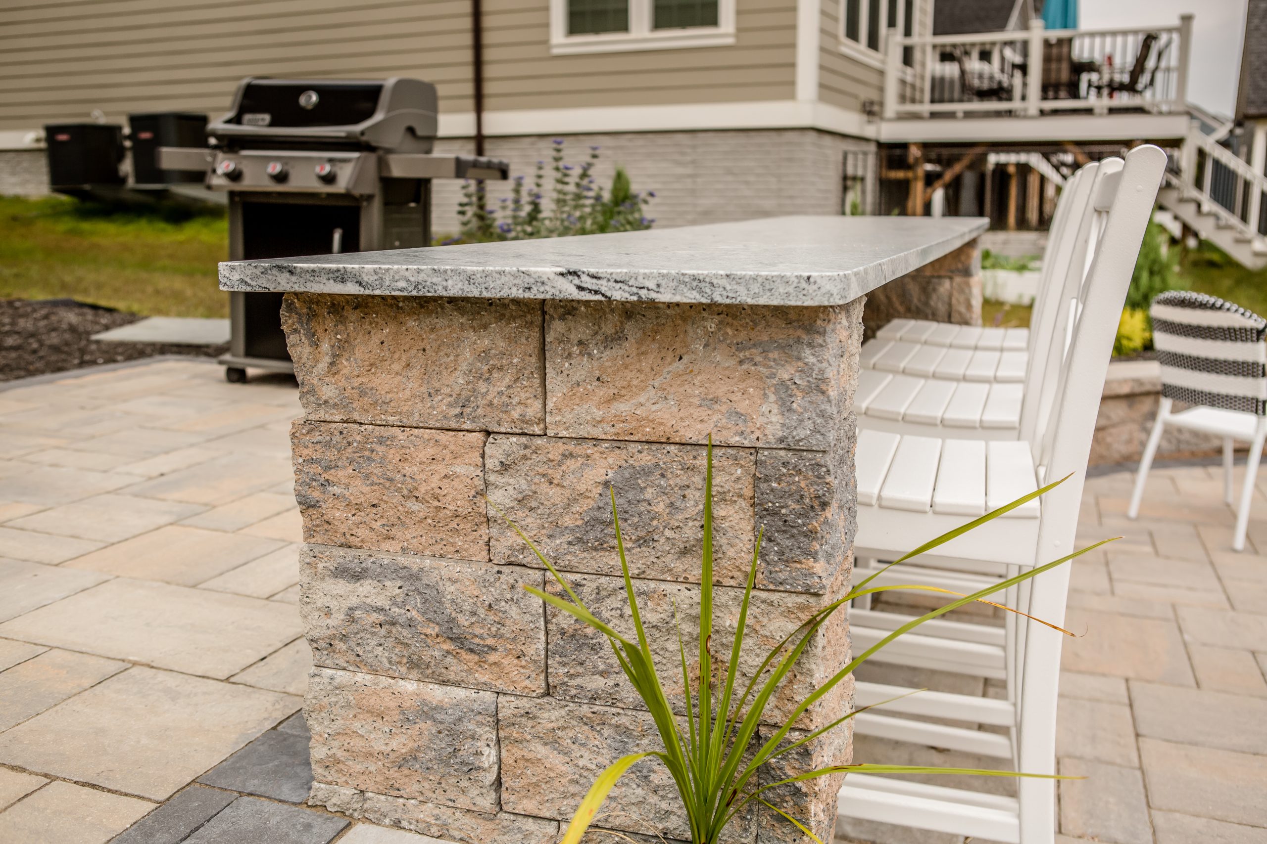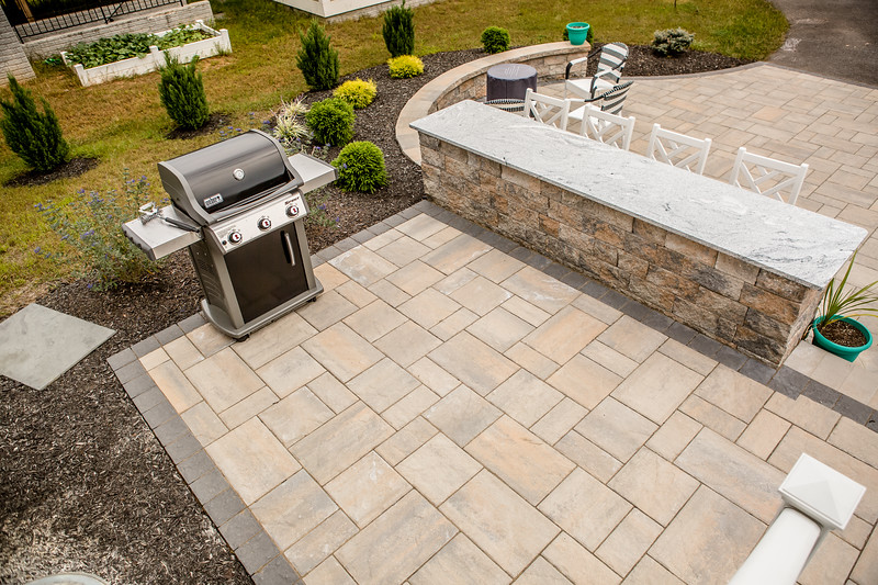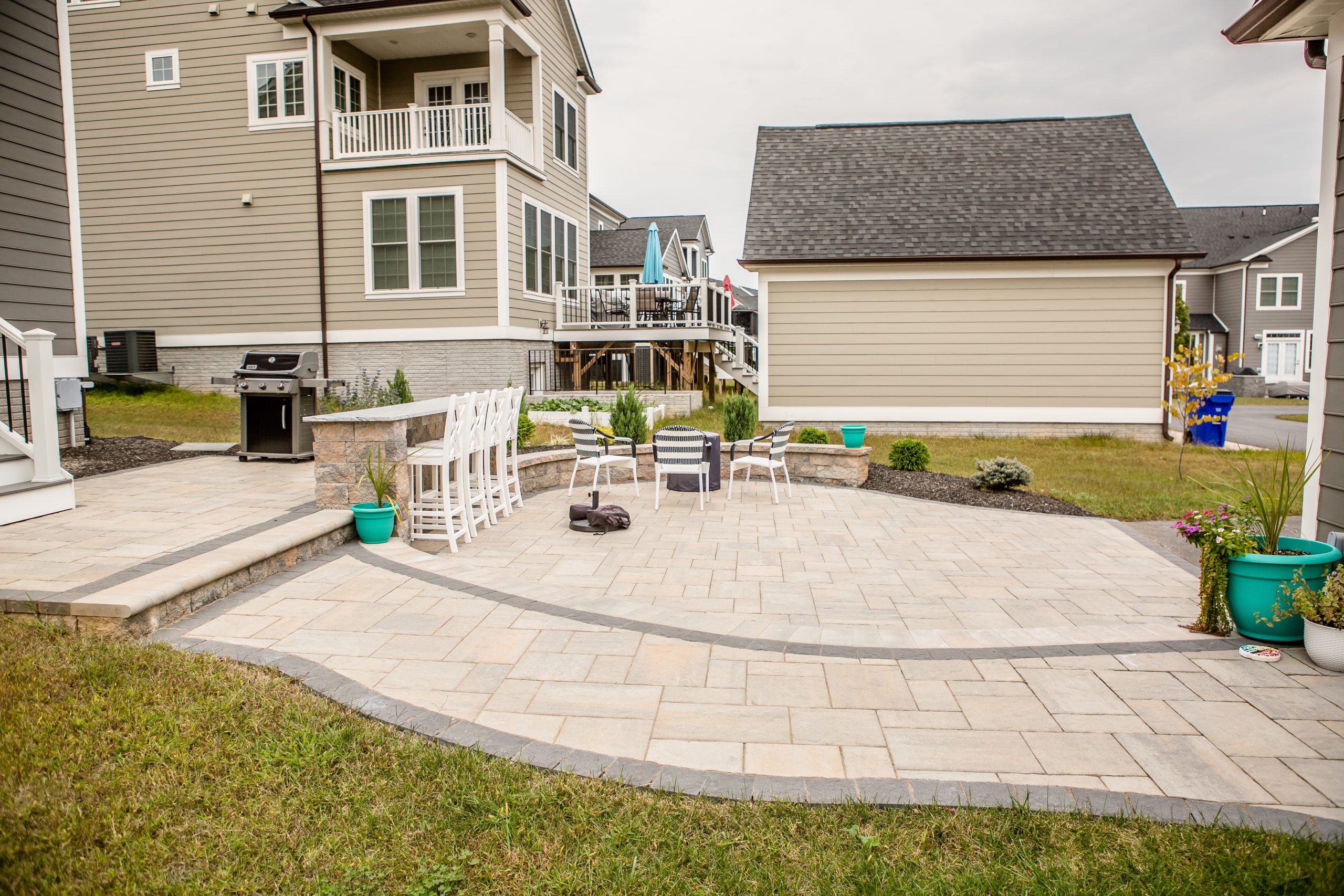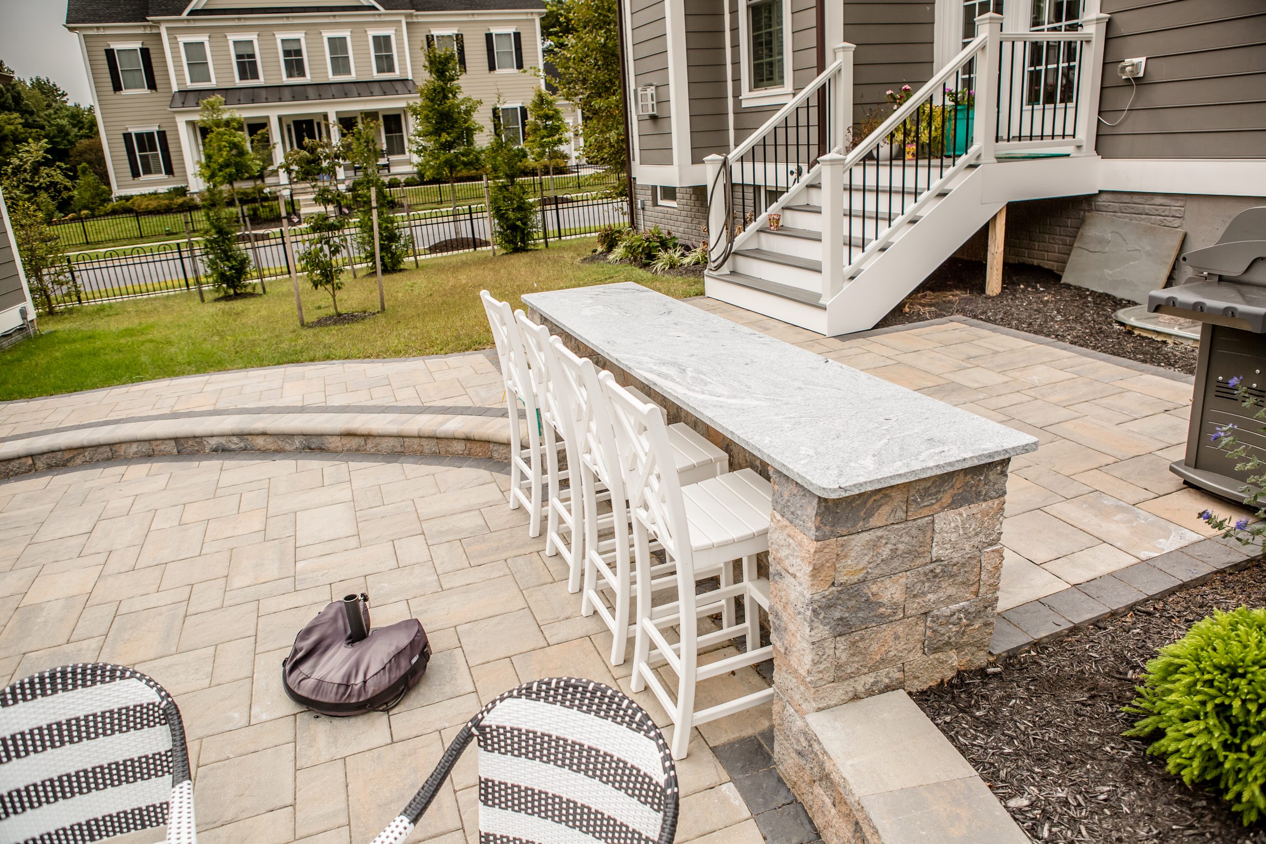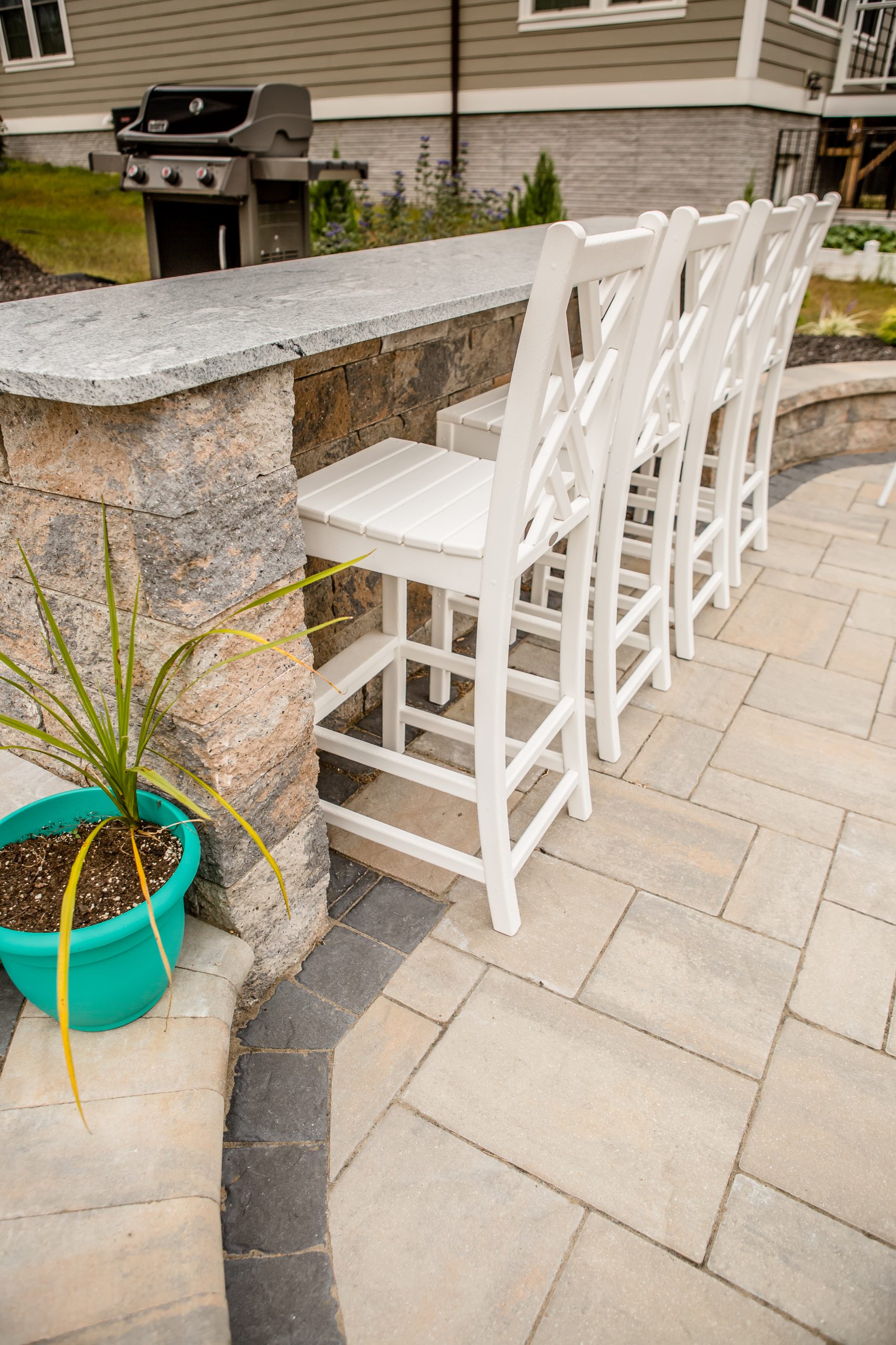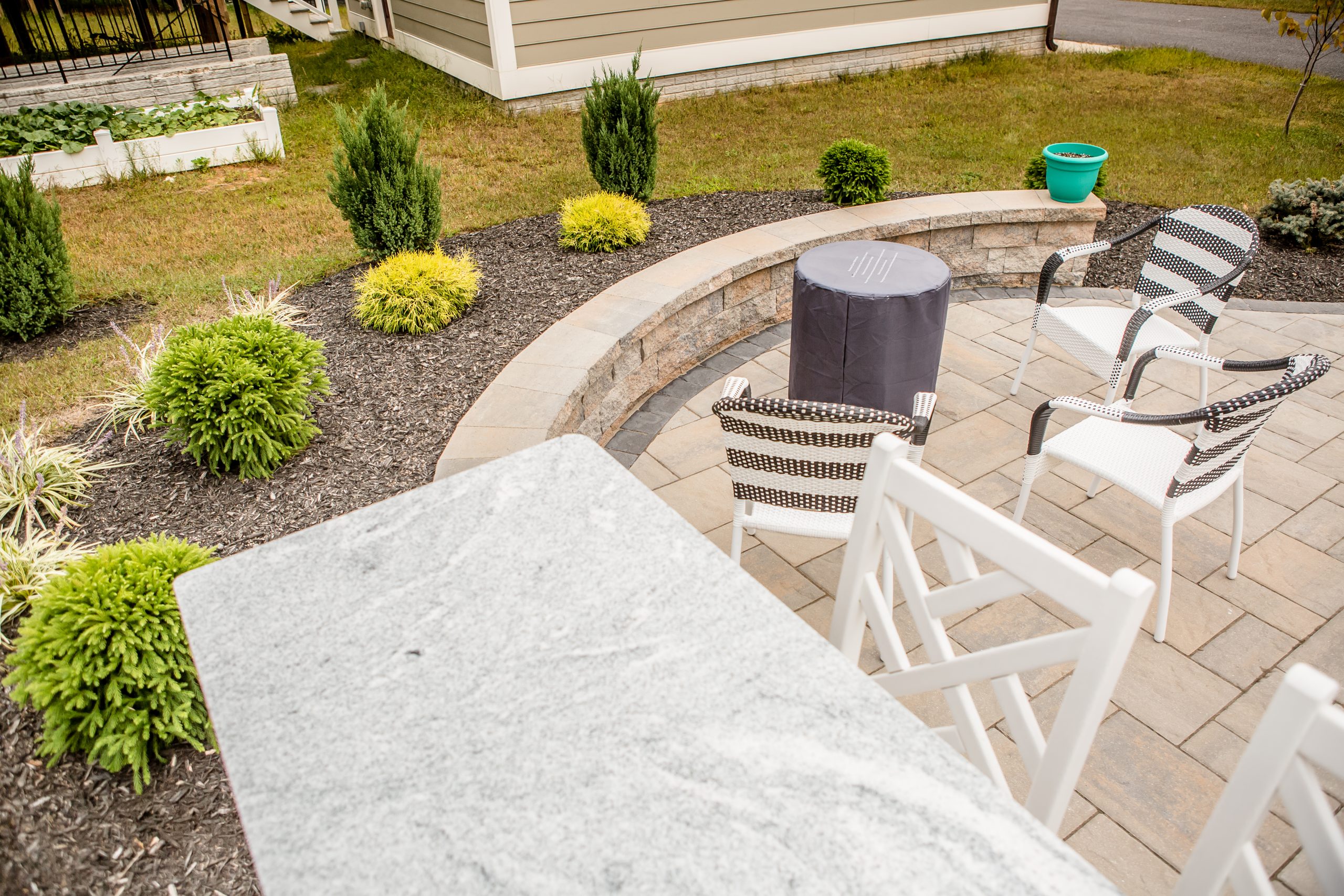 Hometown Landscape installed this compact patio featuring a built-in bar, making efficient use of a small outdoor space. The layout provides a convenient area for casual dining, entertaining, and everyday enjoyment without overwhelming the yard. Browse the gallery to see how smart design choices can add comfort and usability to even the smallest backyard.