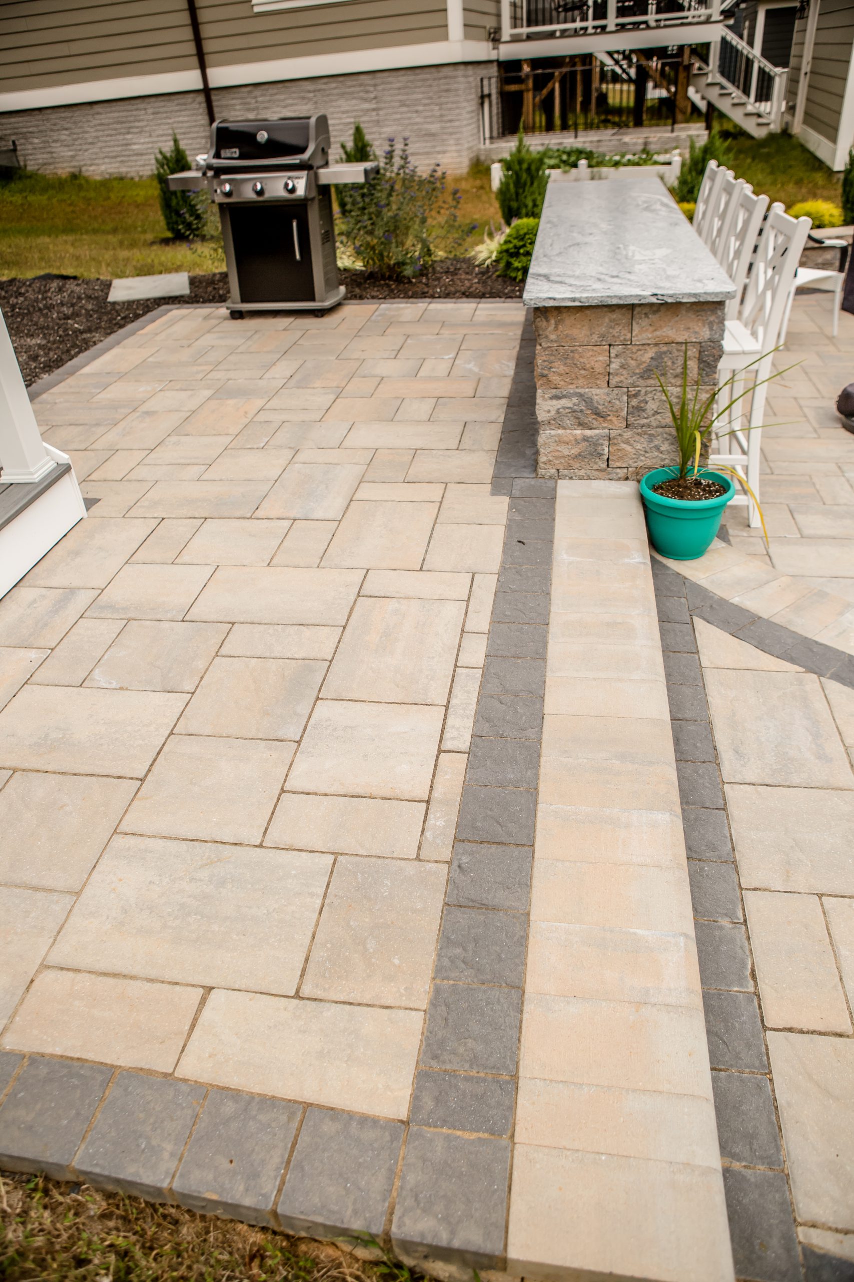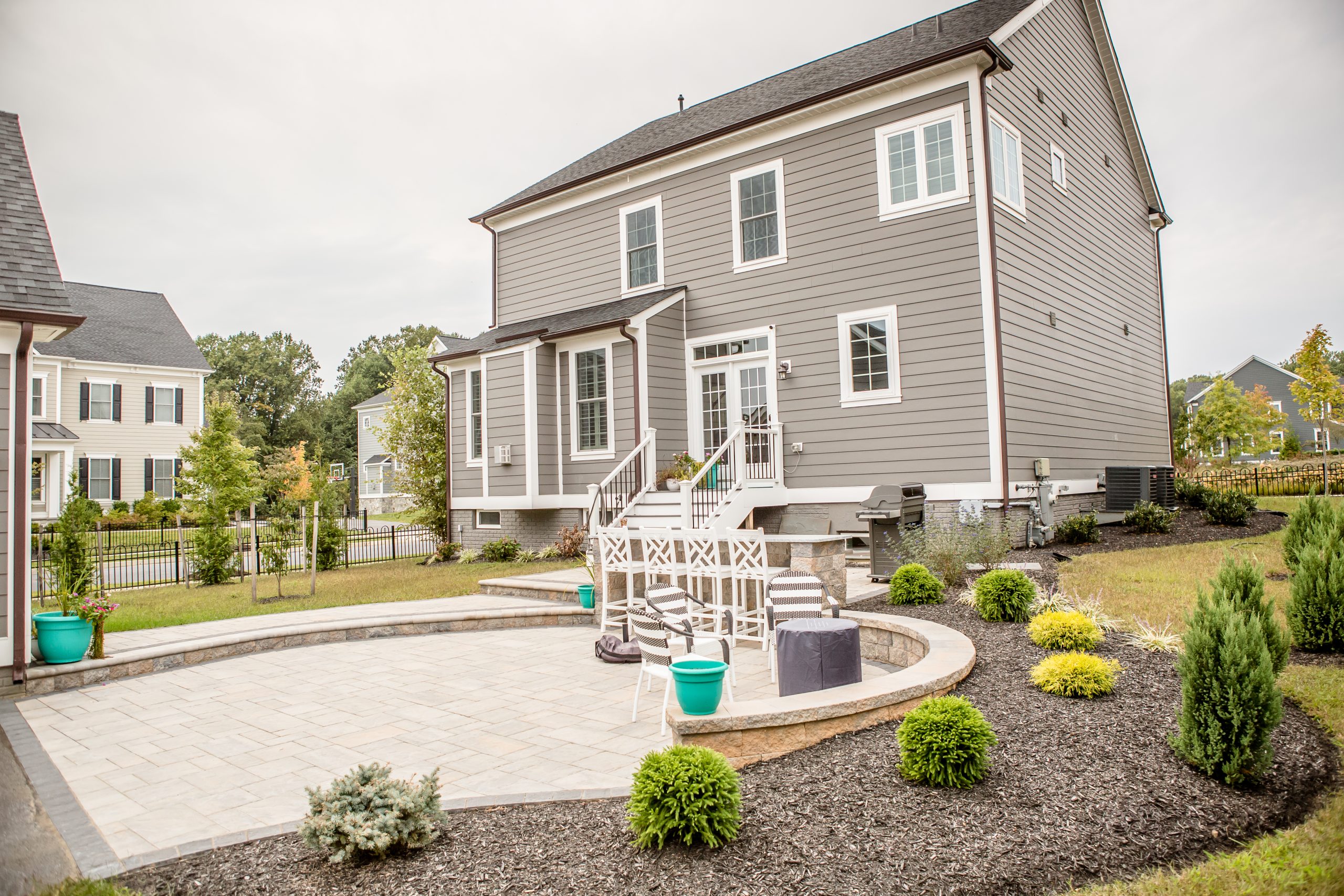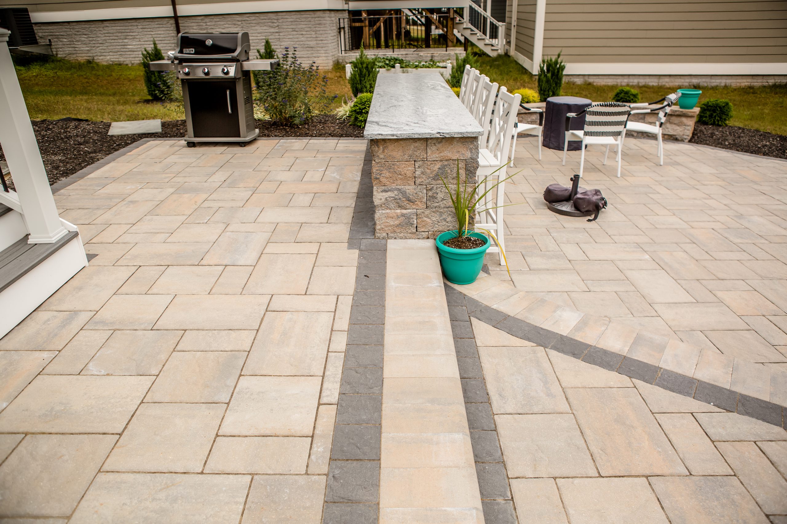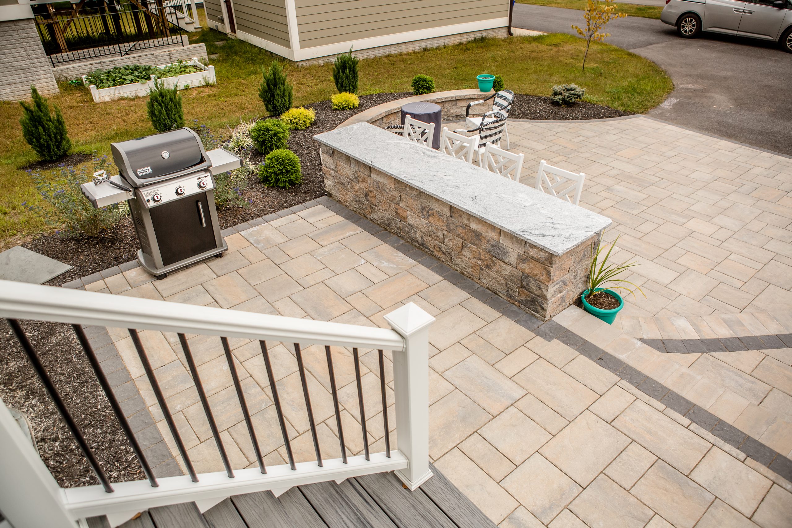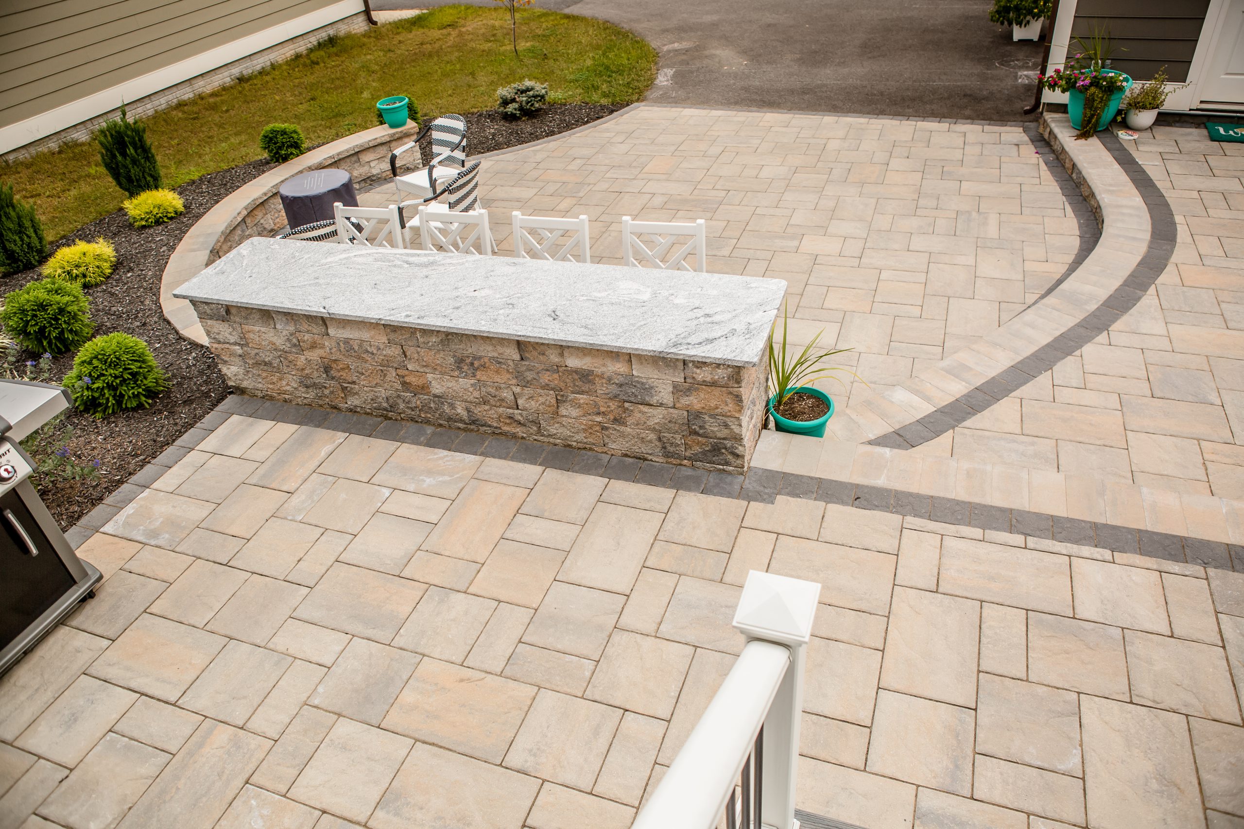 Hometown Landscape installed this compact patio featuring a built-in bar, making efficient use of a small outdoor space. The layout provides a convenient area for casual dining, entertaining, and everyday enjoyment without overwhelming the yard. Browse the gallery to see how smart design choices can add comfort and usability to even the smallest backyard.