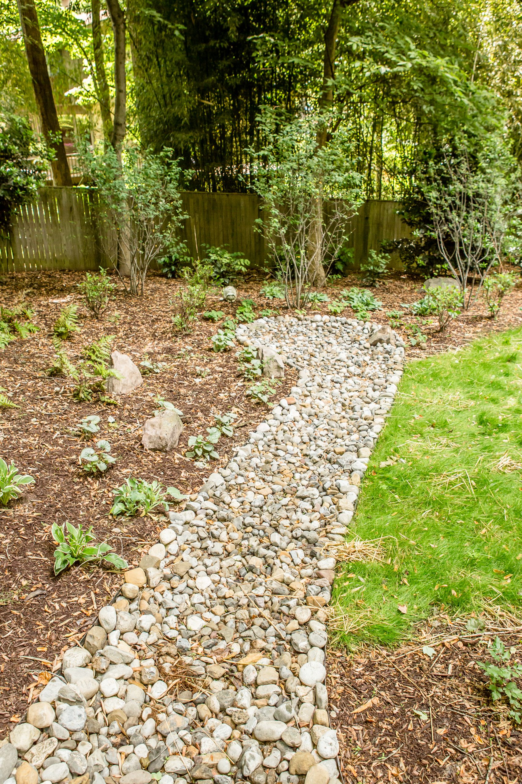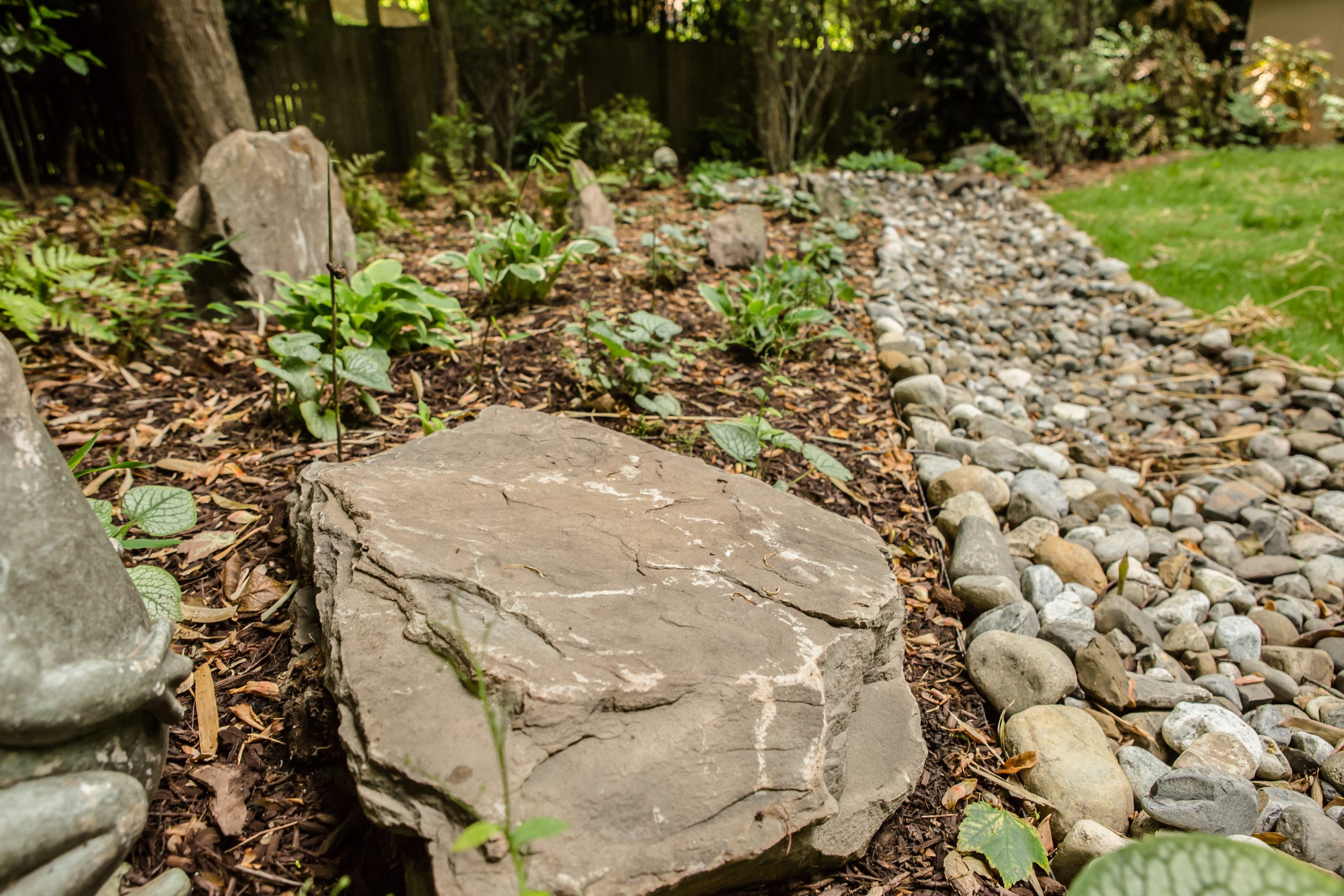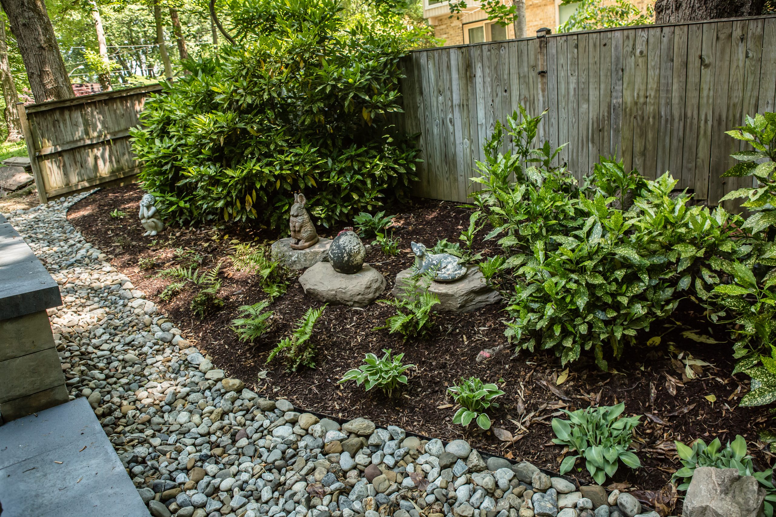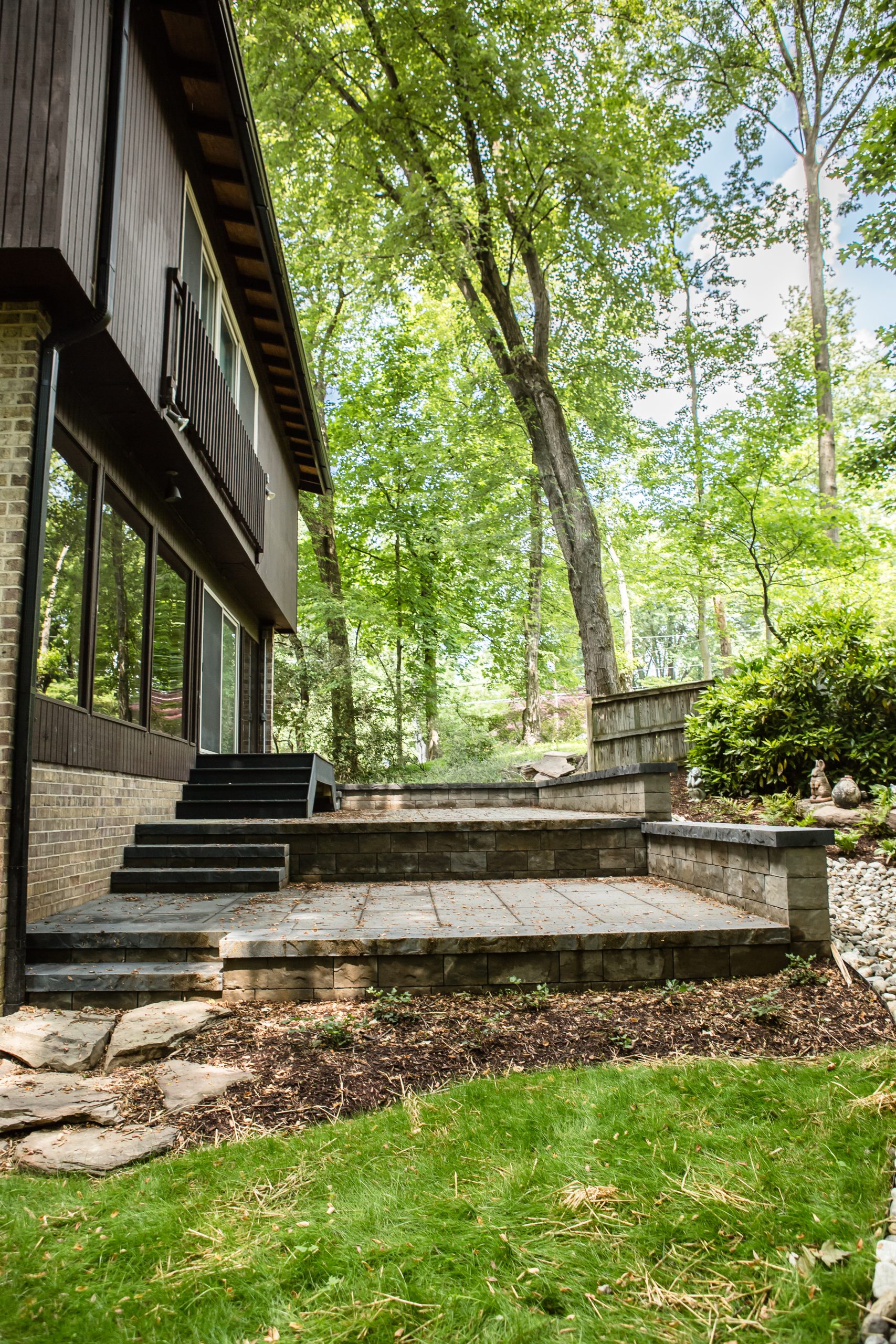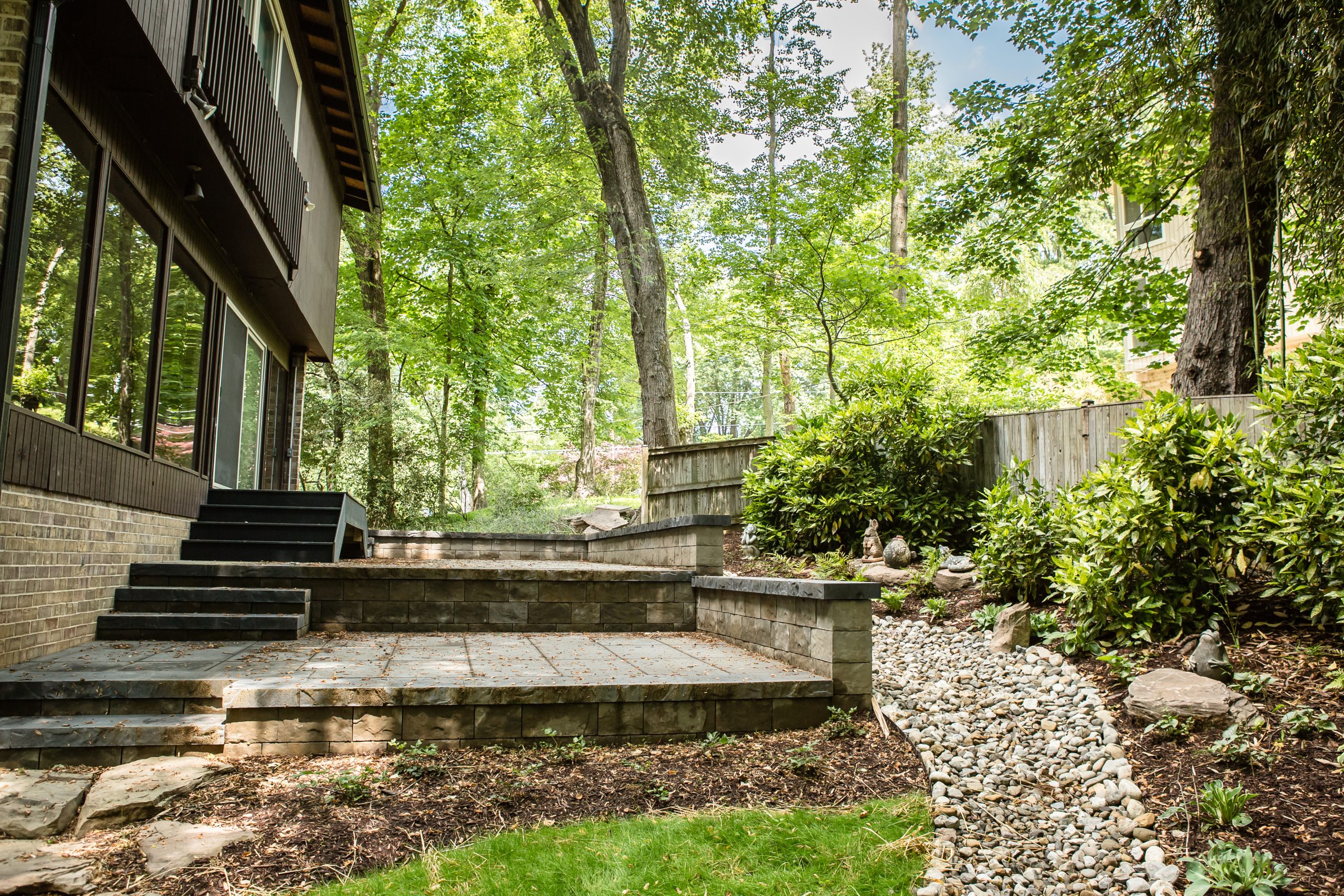 Hometown Landscape installed a Techo-Bloc Blu Grande concrete paver patio and an adjacent gravel swale to manage drainage. The patio provides a durable, low-maintenance space for relaxing or entertaining, while the gravel swale directs water away from the yard, preventing erosion and standing water. Browse the gallery to see how we created a beautiful patio paired with practical drainage solutions.